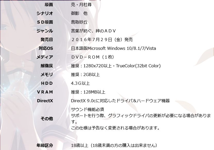 | 公式ジャンル | 言葉が紡ぐ、絆のADV |