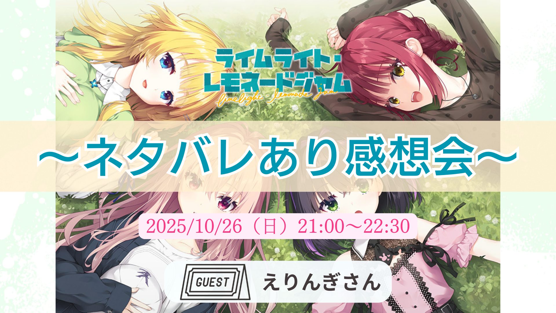 ゆずソフトさんの最新作『ライムライト・レモネードジャム』のネタバレあり感想会をYouTubeのライブ配信で開催します!