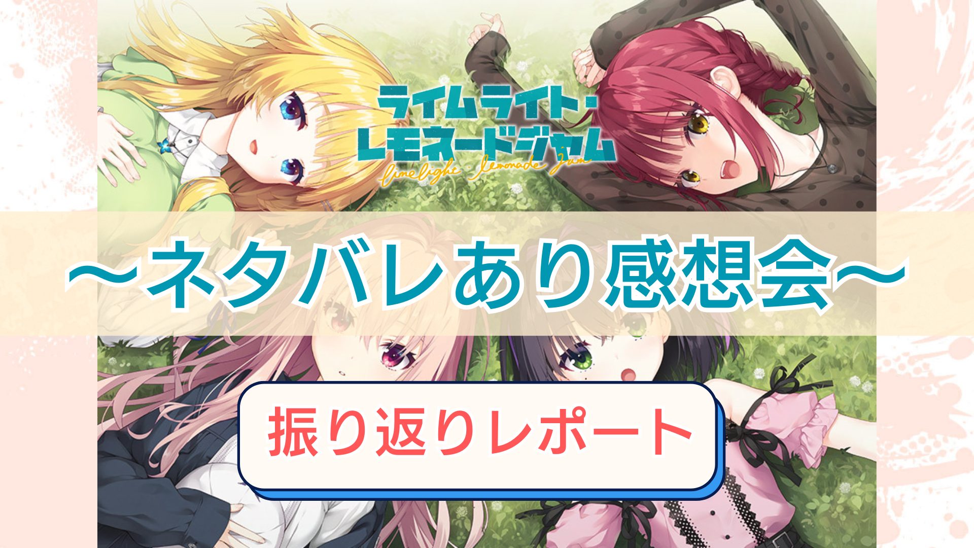それでは以上で『ライムライト・レモネードジャム』の「ネタバレあり感想会」の振り返りレポートを締めさせていただきます。